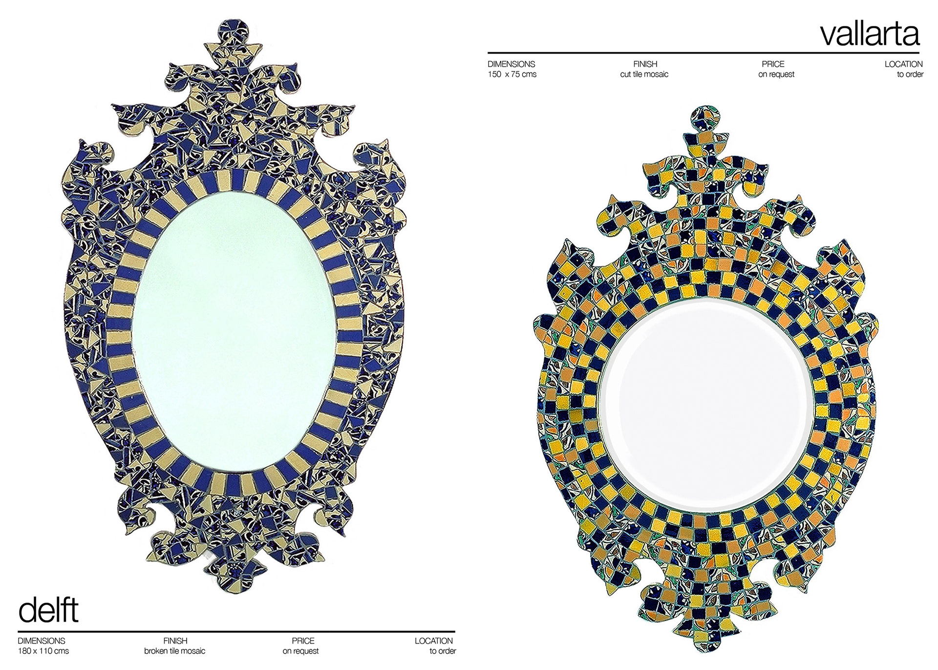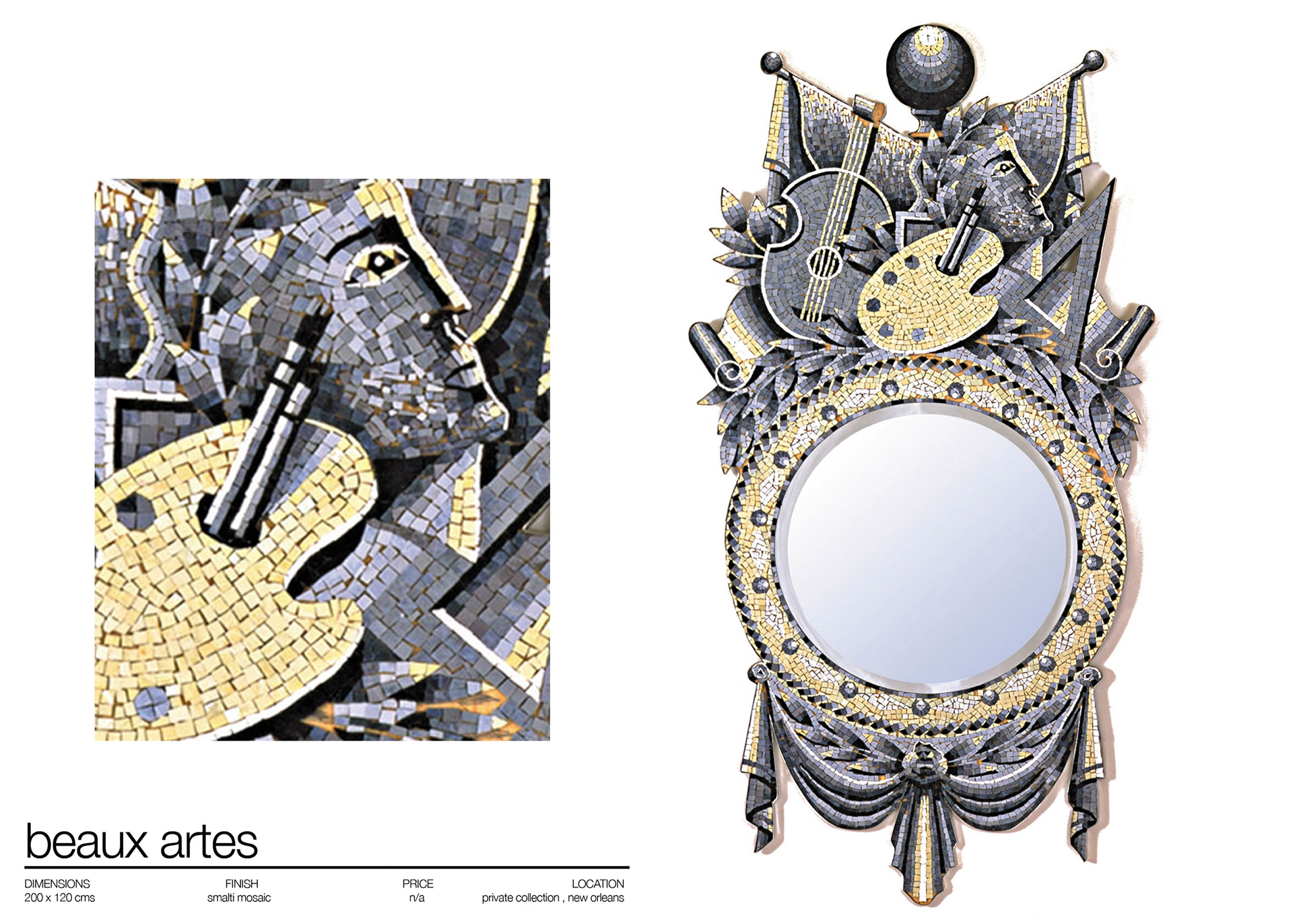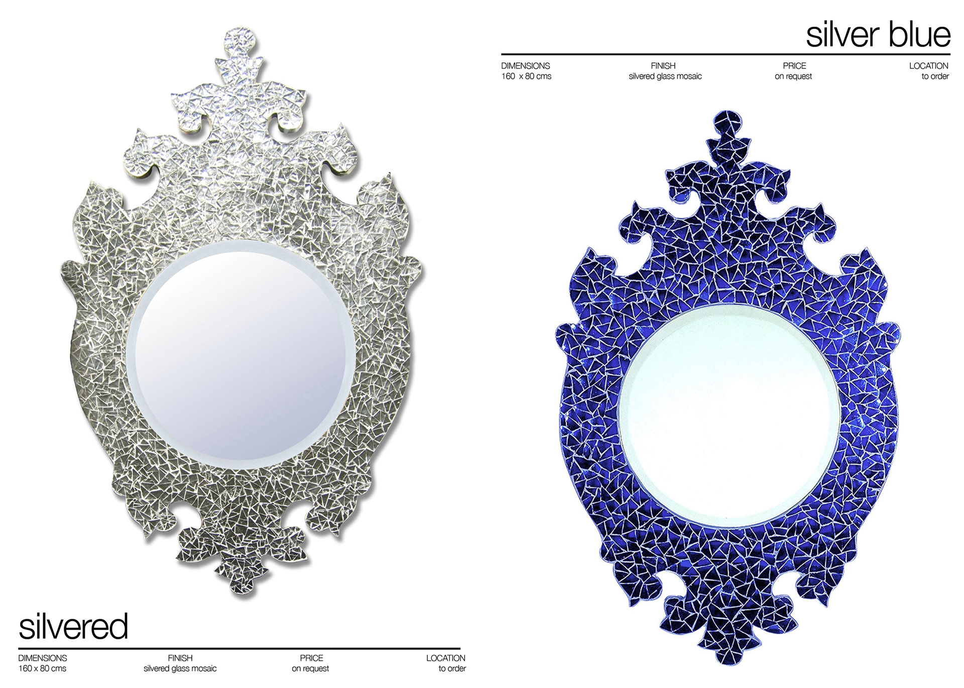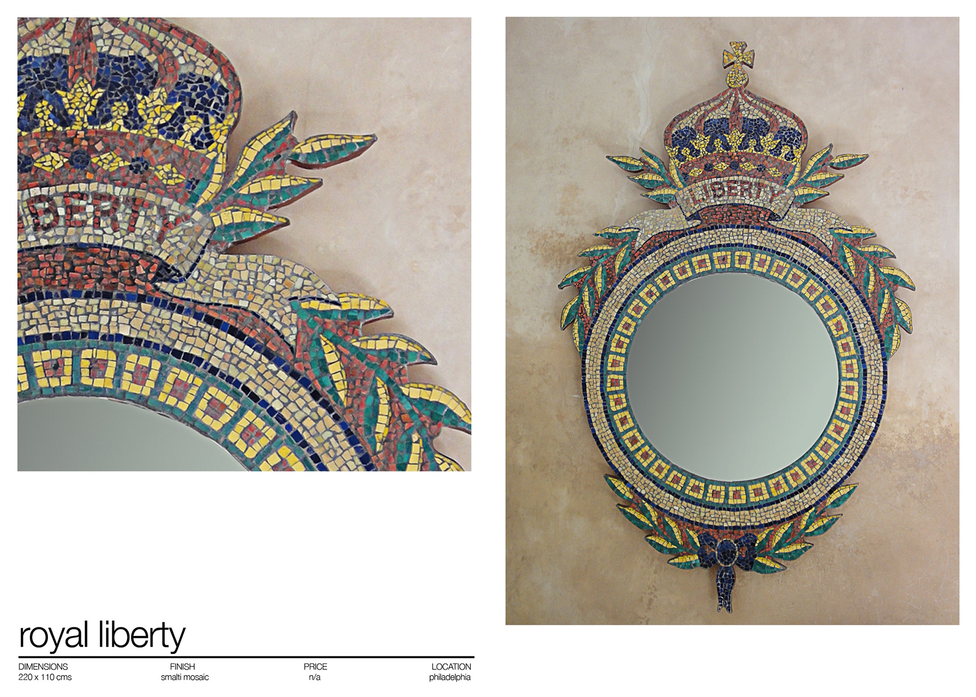 BAROQUE MIRRORS . MATERIALS ; SILVERED MOSAIC , ITALIAN SMALTI , BROKEN AND CUT TILE . www.martinbrownmosaics.com