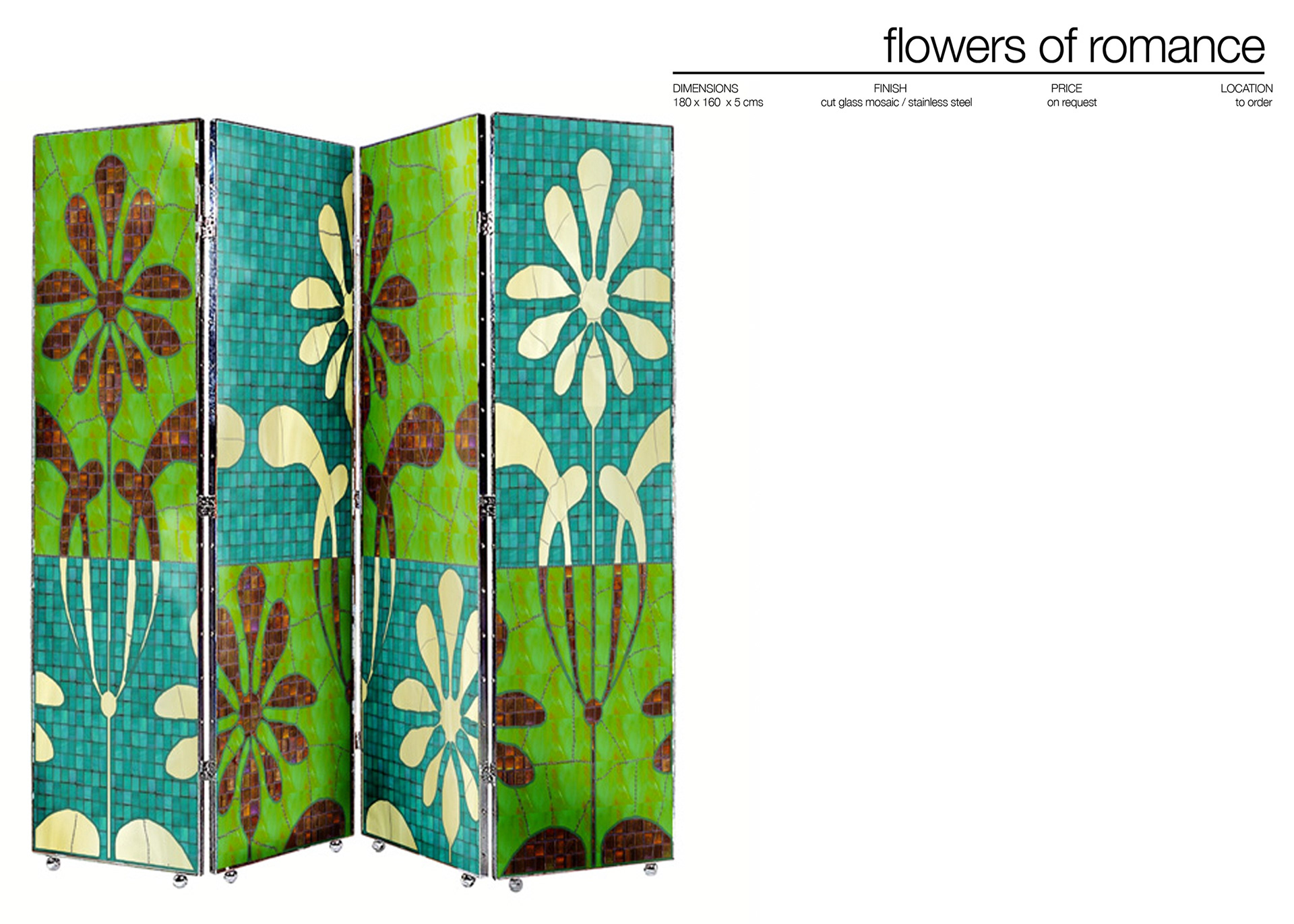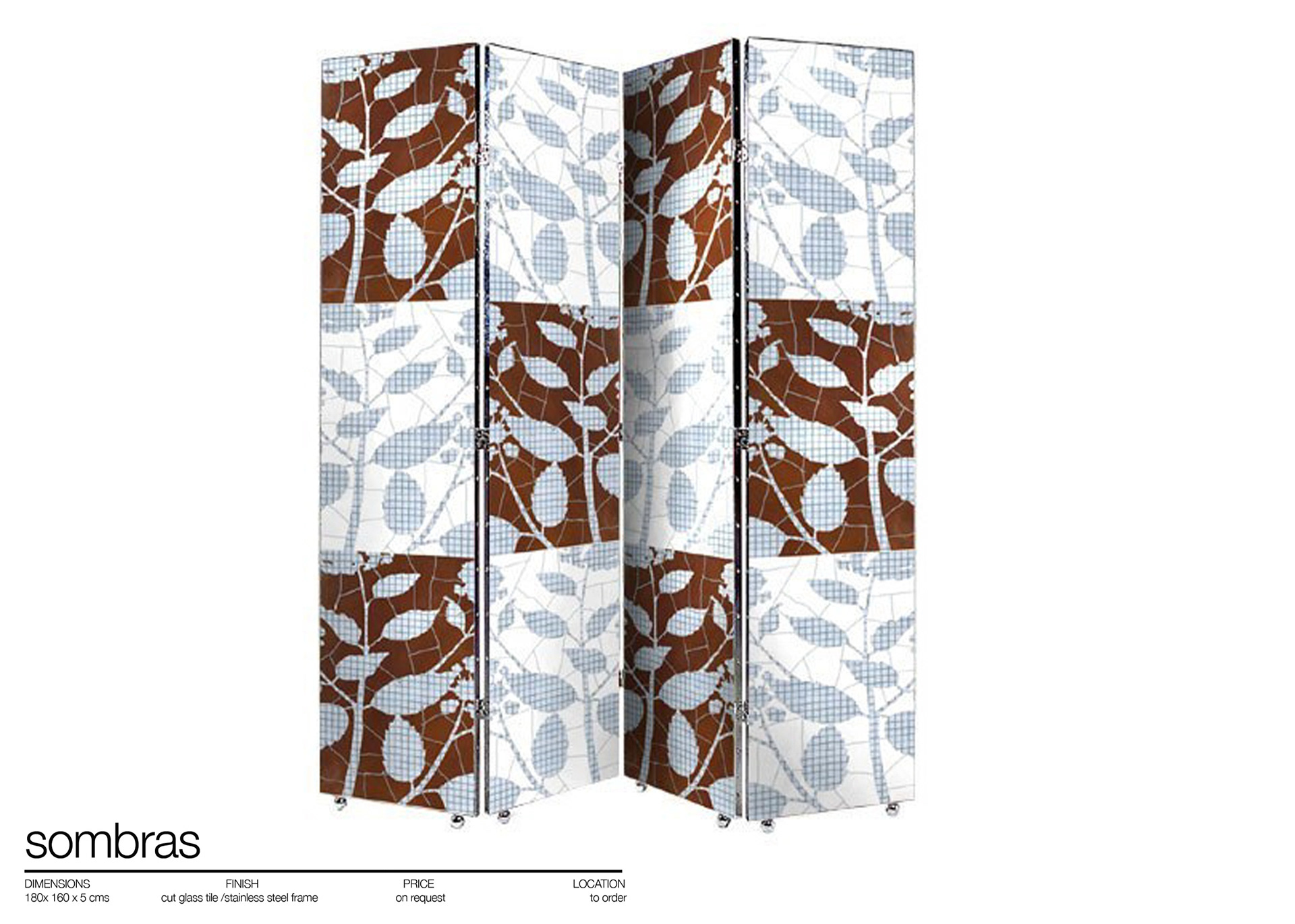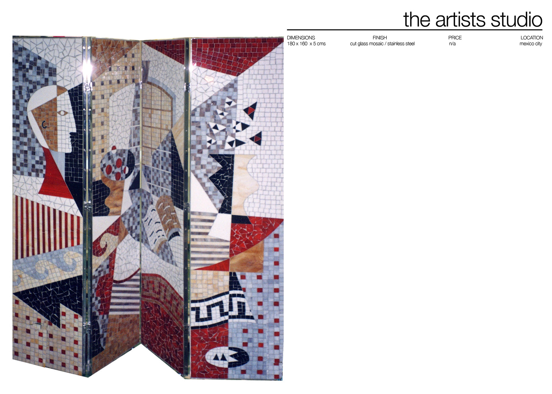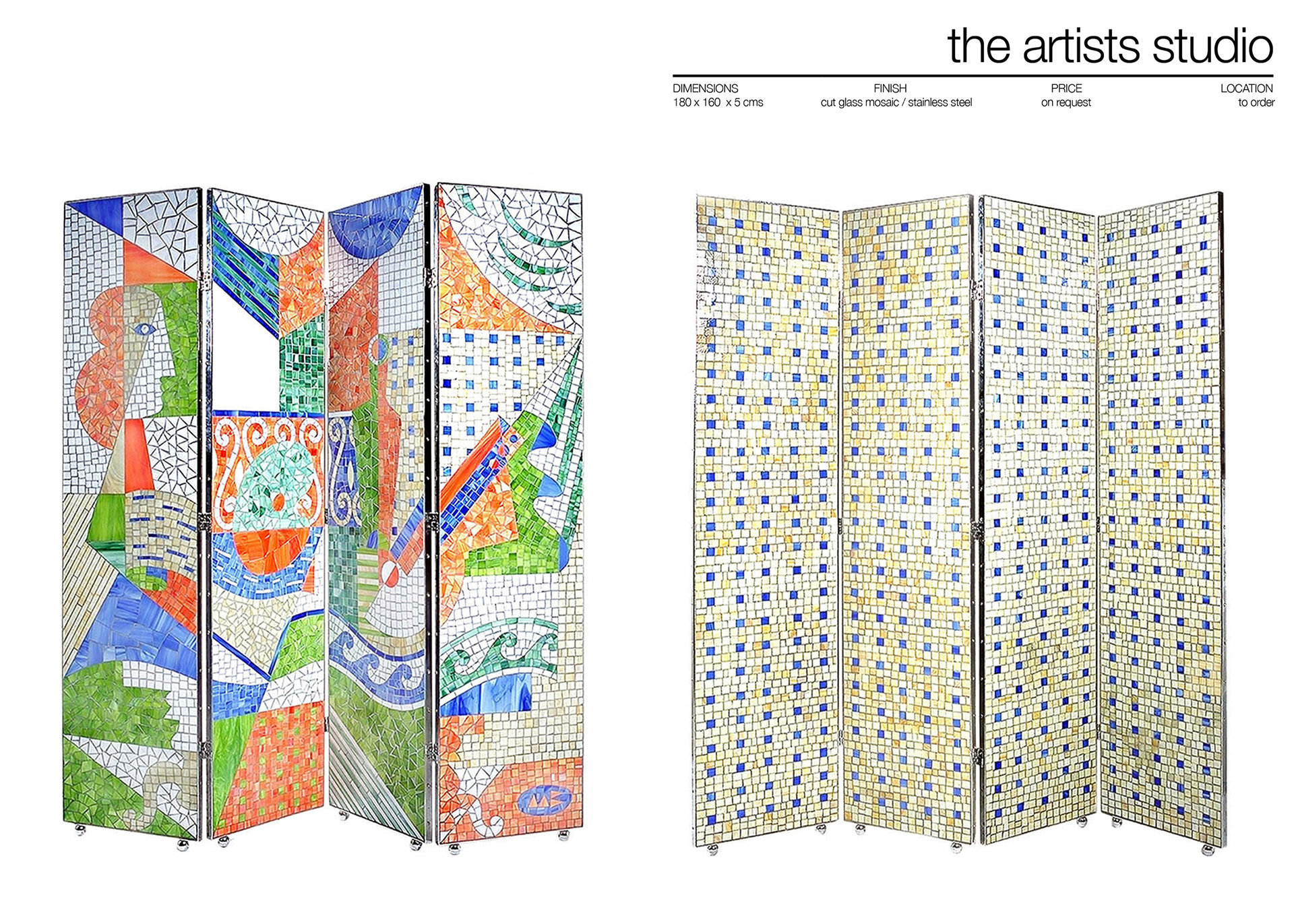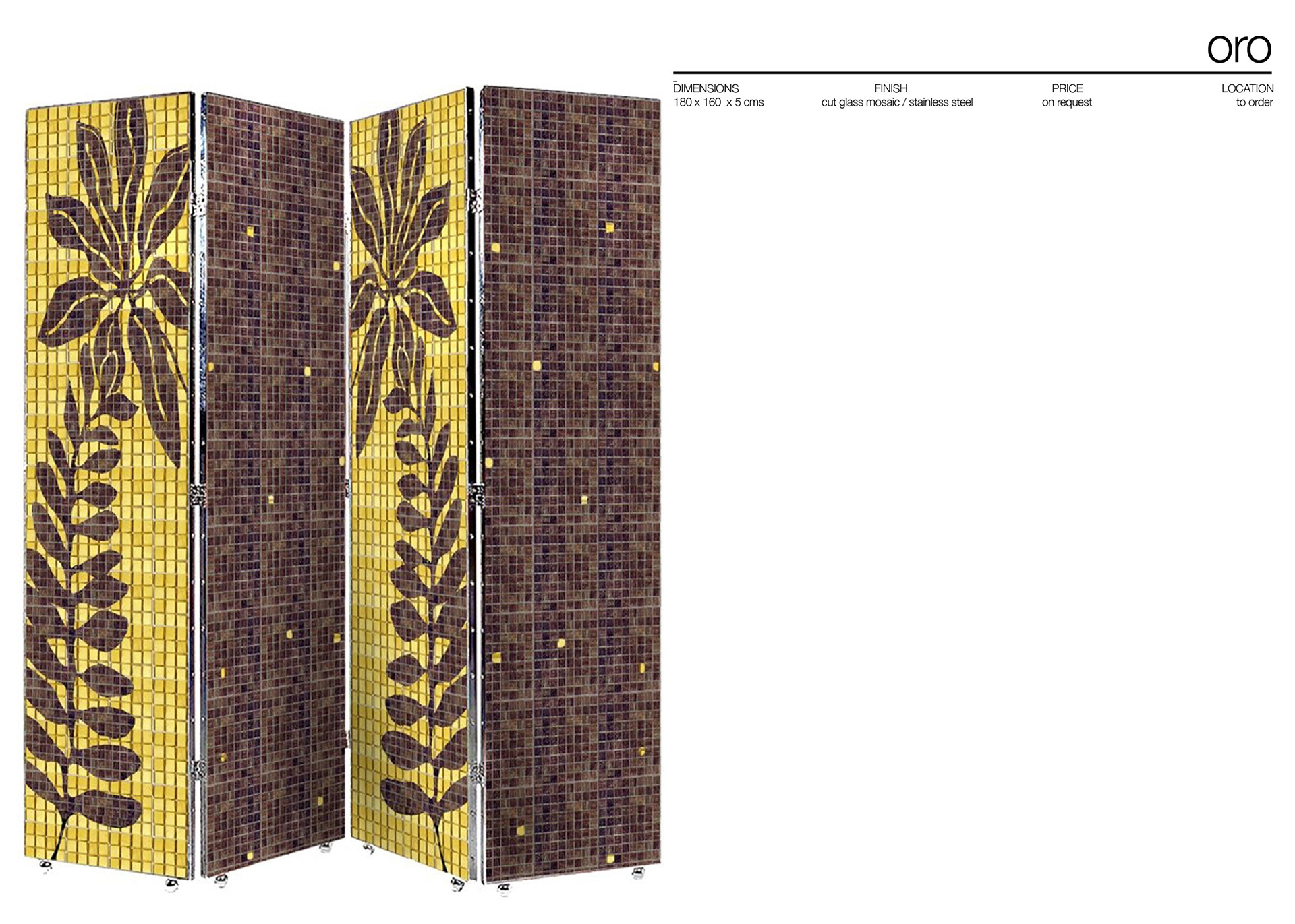 MOSAIC SCREENS MATERIALS ; CUT GLASS, GOLD MOSAIC, BRASS AND STAINLESS STEEL FRAMES . http://www.martinbrownmosaics.com/